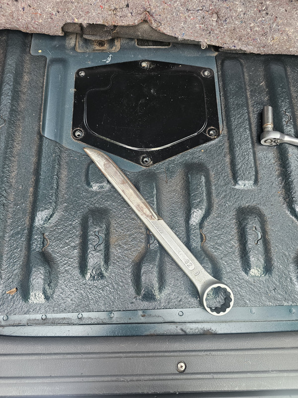 Der Vorbesitzer hat das mit irgendeinem Zeug festgeklebt. Ließ sich aber mit dem 32er Schlüsselmesser lösen.