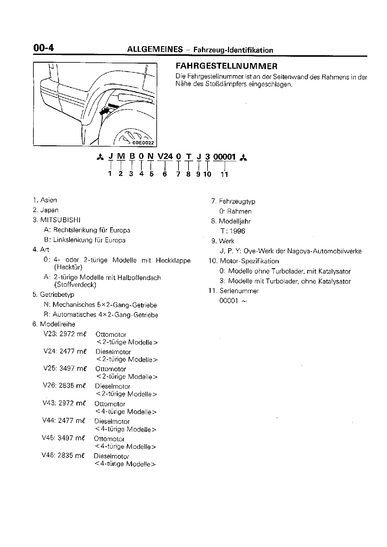 Wenn ich einen Blick auf meine Fahrgestellnummer (FIN) werfe, steht da an 10. Stelle der Buchstabe "P", welcher auf das Baujahr 1993 hinweist (mitsuwiki.org/w/Fahrzeug-Identifizierungsnummer). Im Fahrzeugschein steht aber Erstzulassung Anfang Oktober 1992 drinnen. Zudem habe ich sämtliche ABE's die sogar noch ein früheres Baujahr hindeuten, bei der von dem Trittbrett ist neben der Unterschrift ein Datum vom August '92. In der vom Cobra-Anbausatz (Frontschutzbügel, Lichtband, usw.) steht sogar ein Datum vom September 1991.