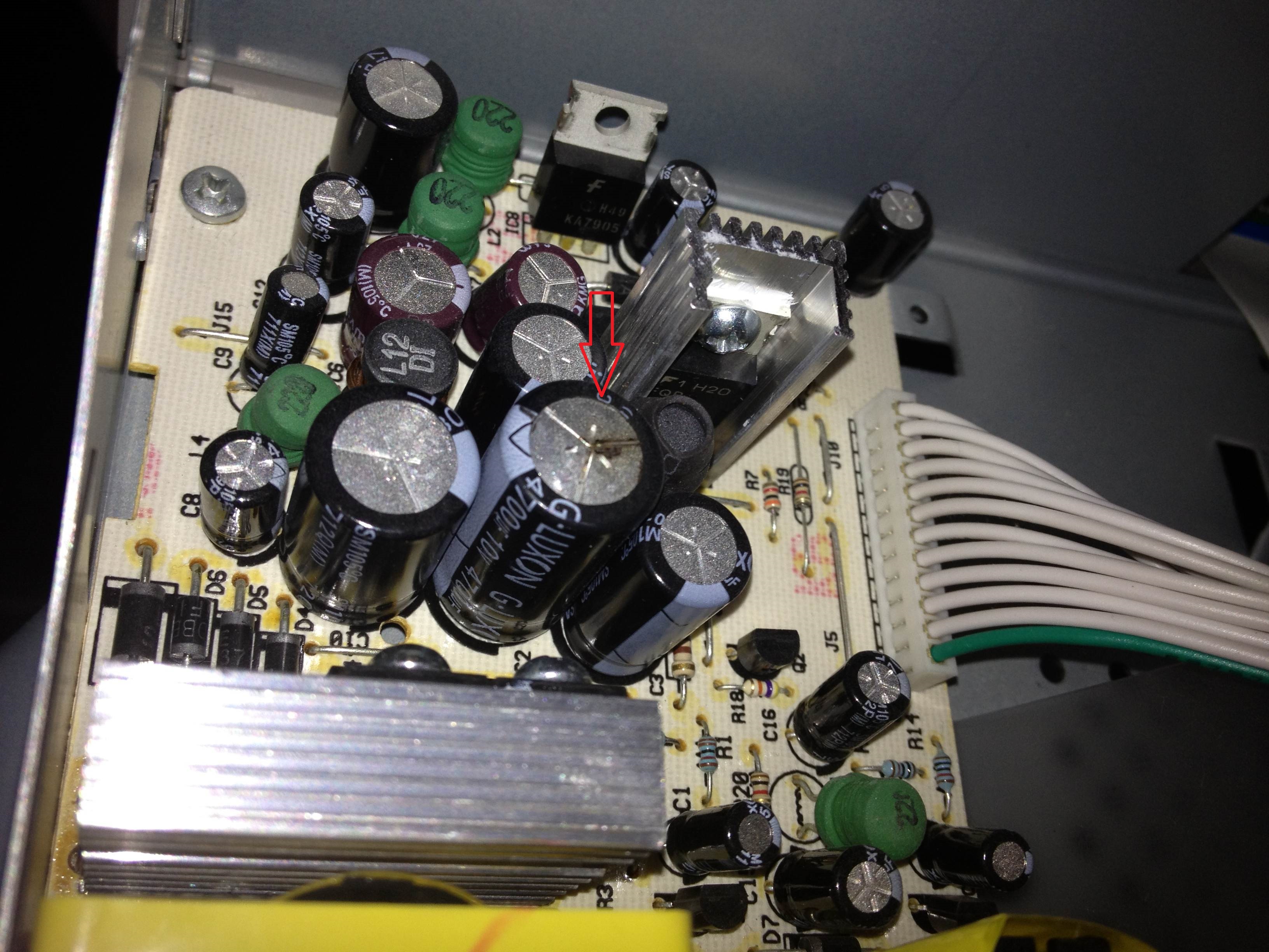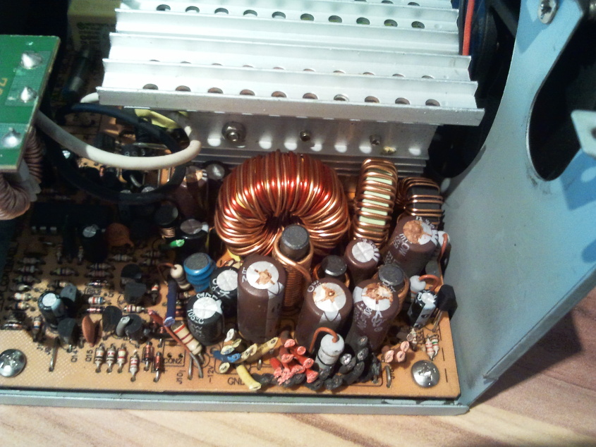 So sah übrigens ein 7 Jahre altes Netzteil aus, was ich gestern ausgemustert habe. Das lief auch noch. Fing zwar schon an zu zicken aber wenn es warm war, ging es. -