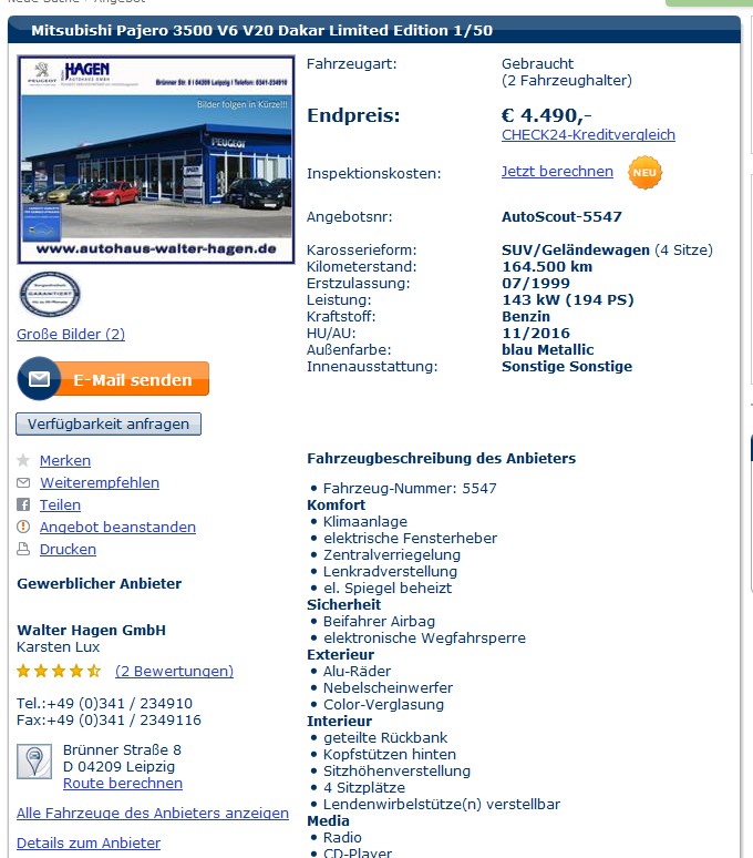Den kaufen & den Dakar dazu. Dann kann man zwei schöne Pajeros draus machen.
