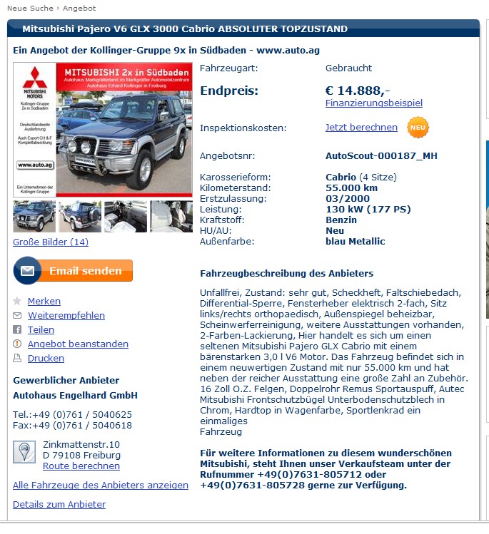 Ansonsten ein Pajero wo sich ne Probefahrt bestimmt lohnt !!!!!!!!!!!!!