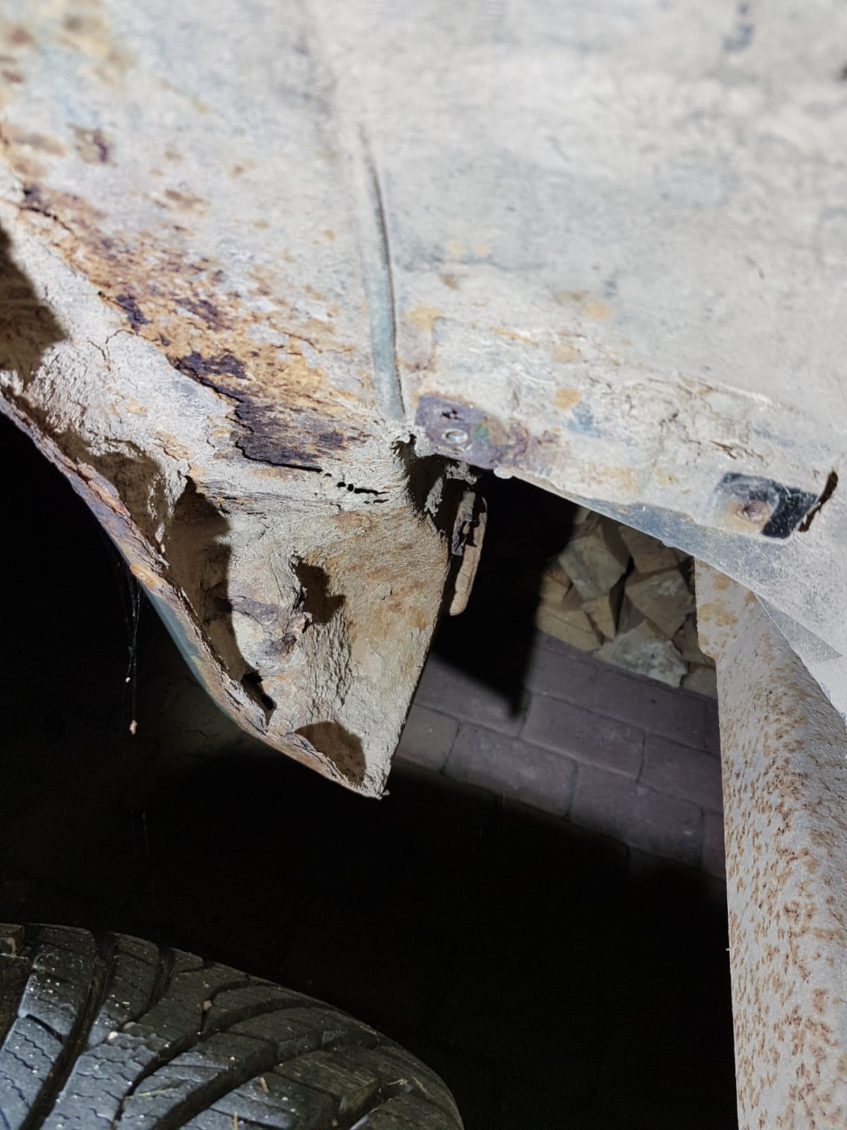 Laut Aussage hat er links und rechts im Radlauf ein 5 bis 10 cm großes Rostloch.