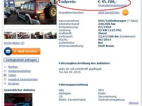 Naja, realistisch wären aufgrund des neuen Zahnriemens und aller Ölwechsel so um die 4K ohne Gasanlage, wenn er wirklich im beschrieben Zustand ist. Da ich eh kein Fan von diesen Gasdingern bin, seh ich die eher als Nachteil/Mangel. Die Nachfrage/die Gebote werden ihm schon den realsitischen Marktwert näherbringen...![]()