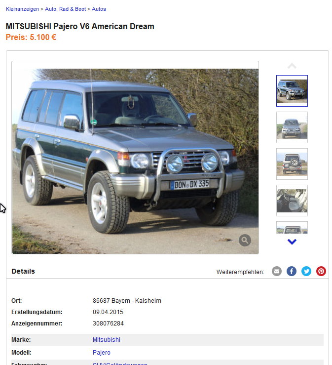 Pajero V20 bei Ebay & Co.