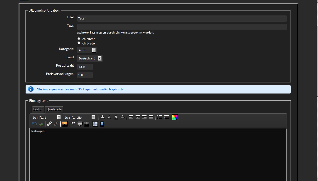 Ich habe selbst schon mehrere Anzeigen erstellt, die PLZ hab ich nie eingetragen und deswegen den Fehler noch nicht gehabt. Es sind ja keine Pflicht- Felder.