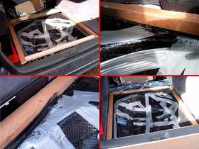 Da ich kein Loch und keine Schraube bei dem ganzen Einbau ins Auto bohren wollte, habe ich den Rahmen mit flexiblem Karosseriekleber von Teroson auf die drei möglichen Seiten des Blechbodens um die Reserveradmulde geklebt. Wichtig dabei ist, daß man sorgfältig arbeitet und alles dicht ist!