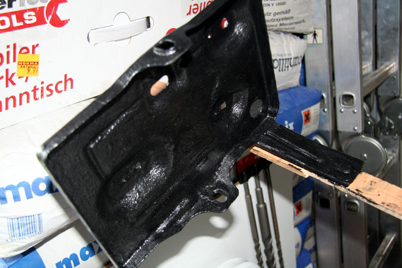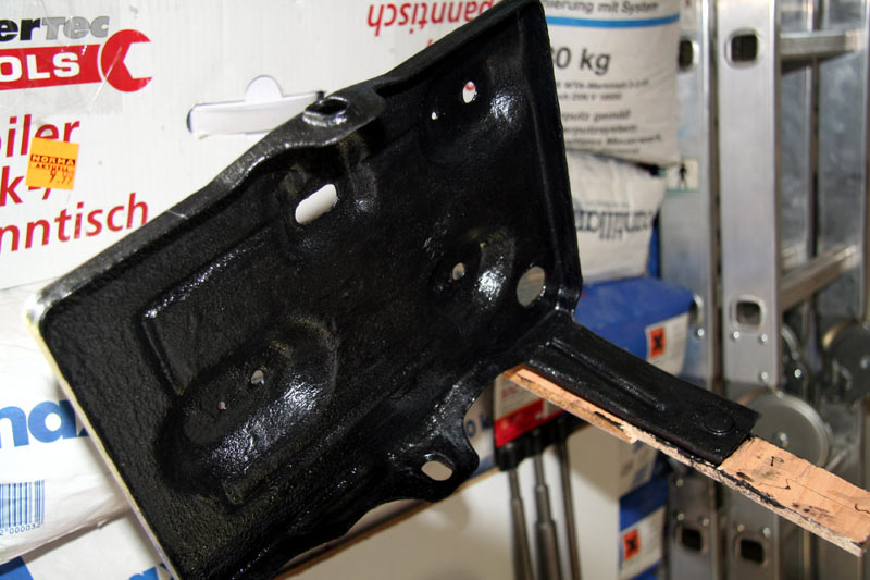 So, mir ist noch ganz schumerig, aber das Halteblech ist jetzt gummiert. Ging ganz gut mit dem Industriezeugs vom Bekannten, allerdings hat alles was gut geht auch ordentlich Lösungsmittel und wenn man dem lang genug ausgesetzt ist, dann brauchts keinen Alkohol mehr, damit es im Kopf dreht. :( Ich habe mindestens 10 Lagen übereinander gestrichen, mal sehen, wie es hält und aussieht, wenn es fertig ausgehärtet ist. Bilder mach ich später noch.