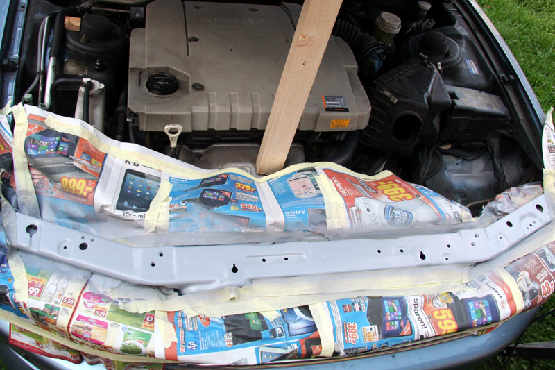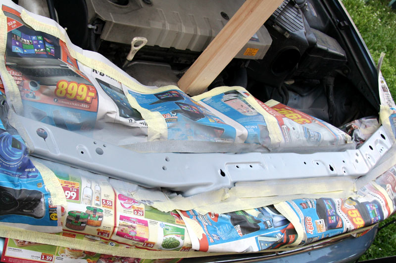 Da es heute ja regnen soll, bete ich regelrecht, dass die Zeit noch reicht, sonst ist meine Papierabklebung hin. Wenn es hart auf Hart kommt und ich nichts passendes finde, dann mach ich Klarlack auf die Grundierung.