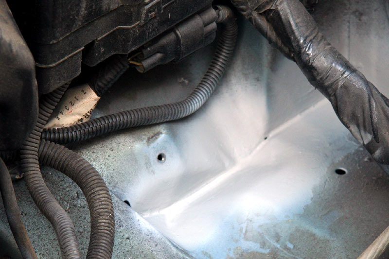Eigentlich kannst du da ein Loch bohren wenn du willst, ich hätte das aber vor der Behandelung mit Rostumwandler gemacht. Das Zeug ist ja dann quasi auch schon wieder eine Schutzschicht, nachdem es mit den Blech reagiert hat.
