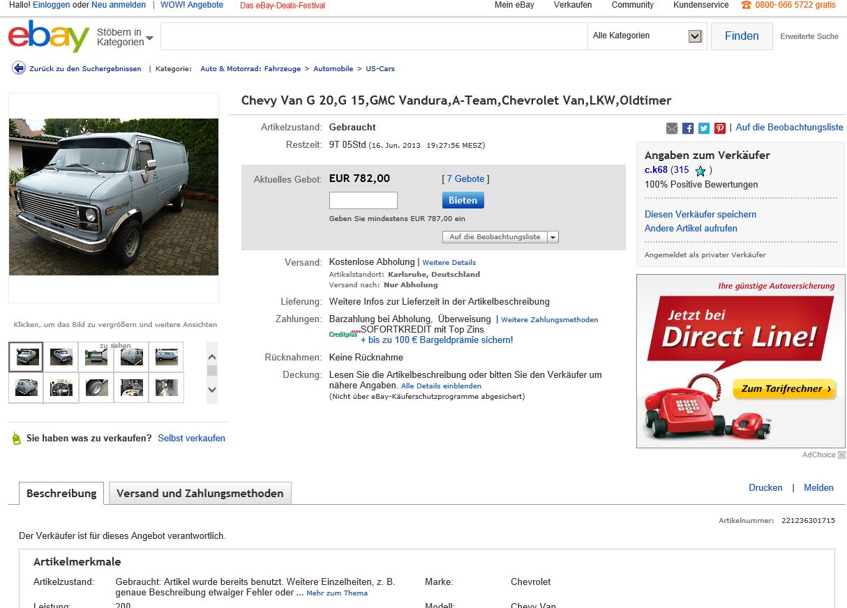 "..........Dafür ab 1 € ohne Mindestpreis hab damals selbst ein Schweinegeld für den Van bezahlt ! "