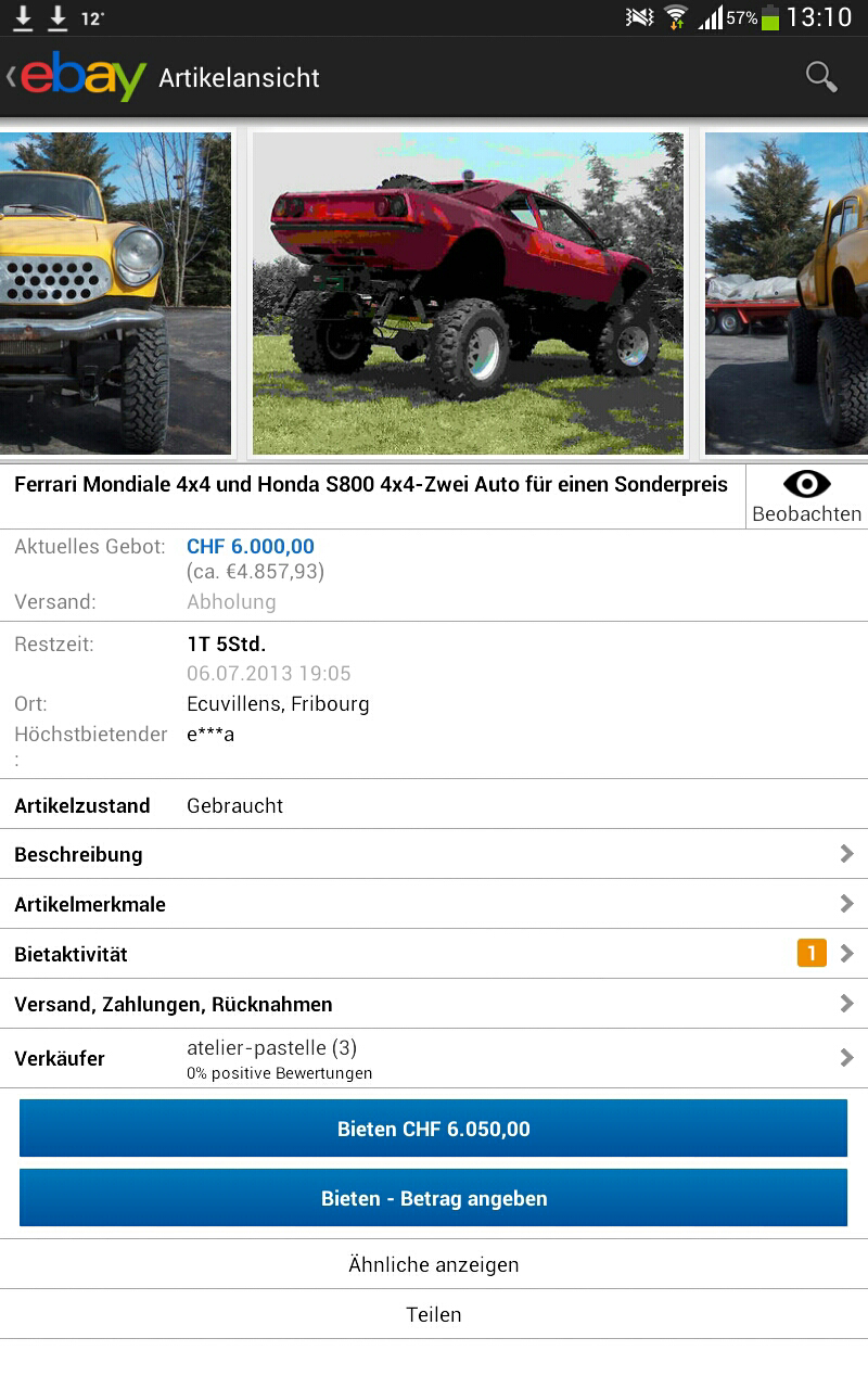 Außerdem wenn der damals 215 tausend DM gekostet hat, wieso gehen dann die Preise so mager hoch? Das kann aber nicht an der fehlenden Straßentzulassung liegen. Weil es ist ja ein Sammlerauto, eins das niemand weiter hat. -