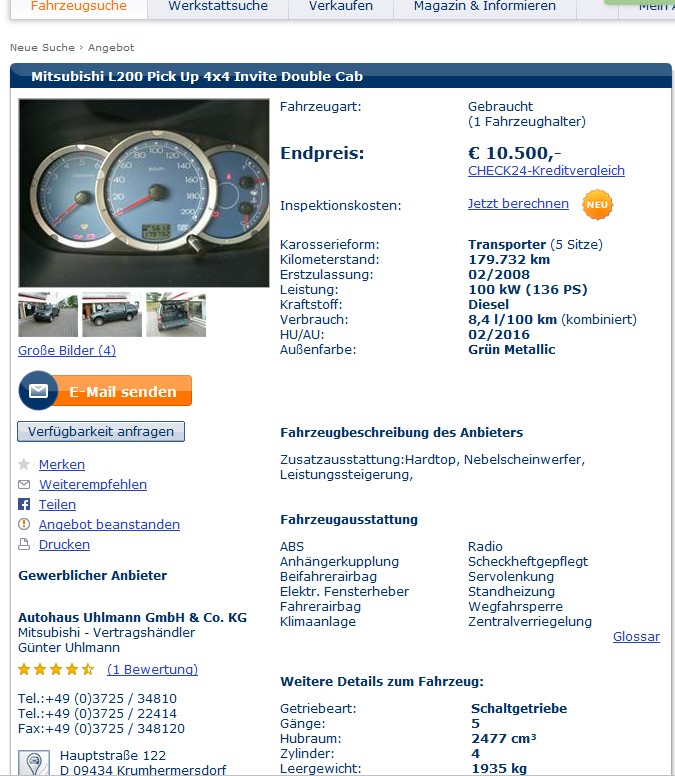 Ich stelle hier mal den Link von unseren alten L200 rein. Vielleicht hat
