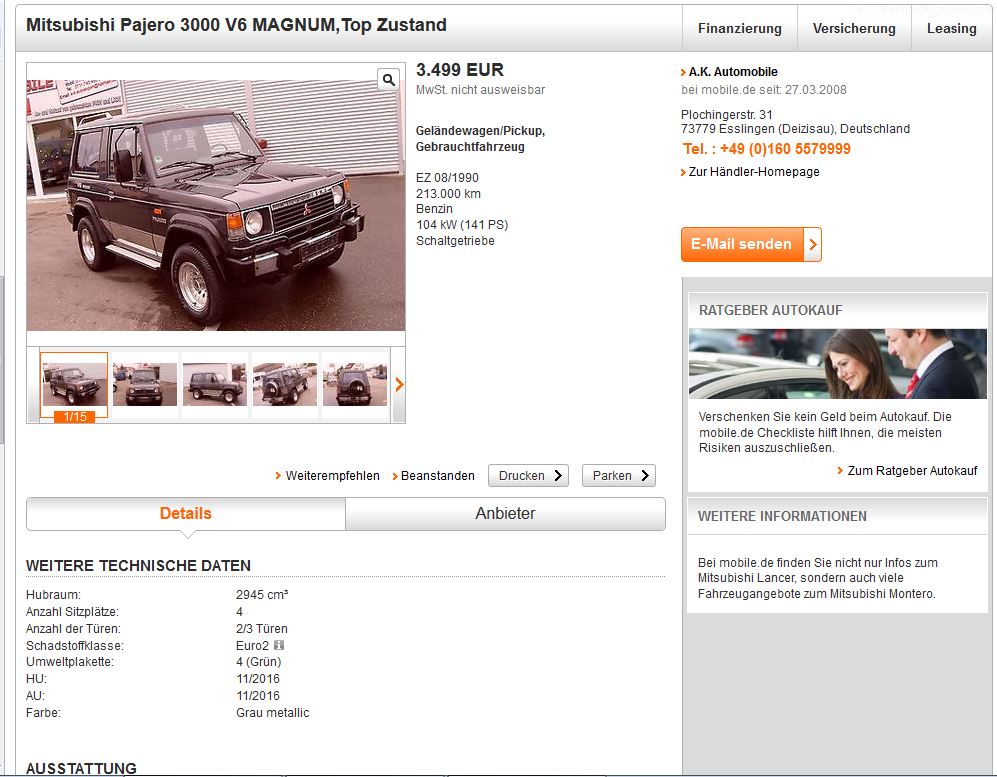 Pajero L040 bei Mobile, Autoscout, Ebay & Co.