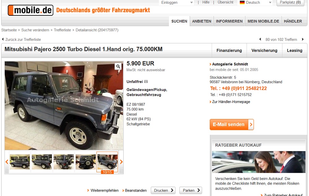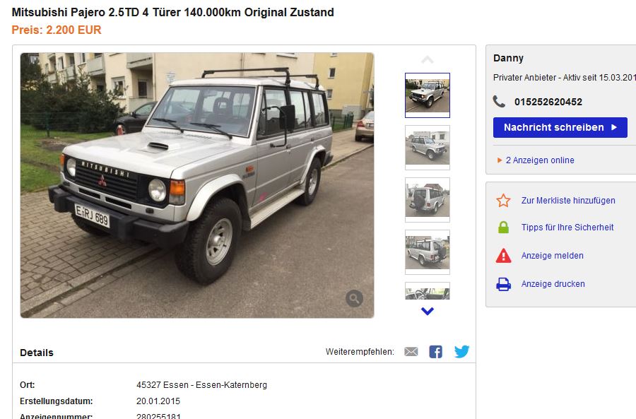 Pajero L040 bei Mobile, Autoscout, Ebay & Co.