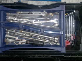Ein Beispiel, so transportiere ich mein Werkzeug: (Fotos). In einem Werkzeugkasten (Kunstoff, Neupreis 12,99) sind Gabelschlüssel, Ratsche in 3/8" 1/4" und 1/2" drin, dazu die Stecknüsse, Verlängerungen, und ähnliches. In dem Anderen (Metall, Flohmarkt 5Euro) sind Zangen, Schraubendreher, Hammer, Messgeräte, und so Kram. Viel mehr brauch ich nicht. Abzieher, Federspanner und schwereres Werkzeug fahr ich eher selten in der Gegend rum.... :D