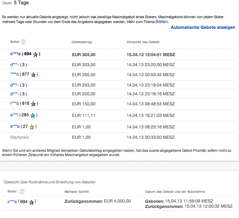 Da hat einer sein 4000er Gebot zurück genommen und nun ist es für TD wieder interessant.