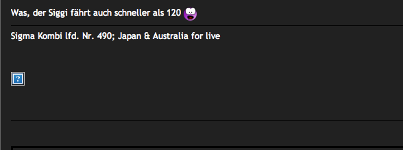Damit ist mir beim nächsten Sigma Treffen der Ehrenpokal der Galantfraktion für den ultimativen Rentnerschlitten sicher