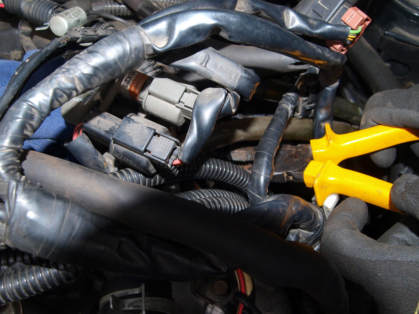 Leider sind die Schutzschläuche teilweise in Ihre Bestandteile verfallen. Das hat den Nachteil, das sich das Zeug, überall hin verteilt. Deshalb haben wir alle Öffnungen abgedeckt.